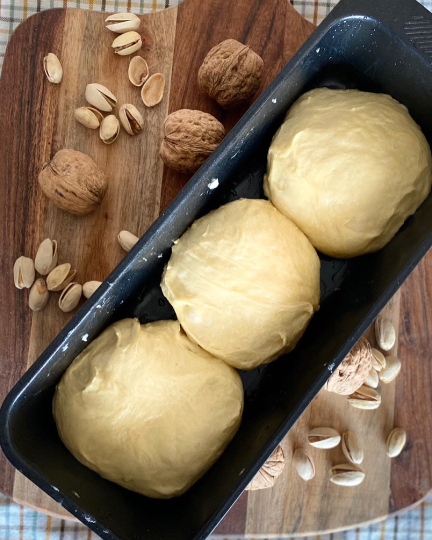 Les placer dans un moule a brioche, beurré avant d ‘enfourner