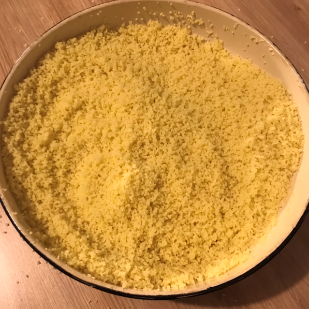Une fois la semoule cuite et refroidi ,égrainez la .(toute la semoule doit être fluide)