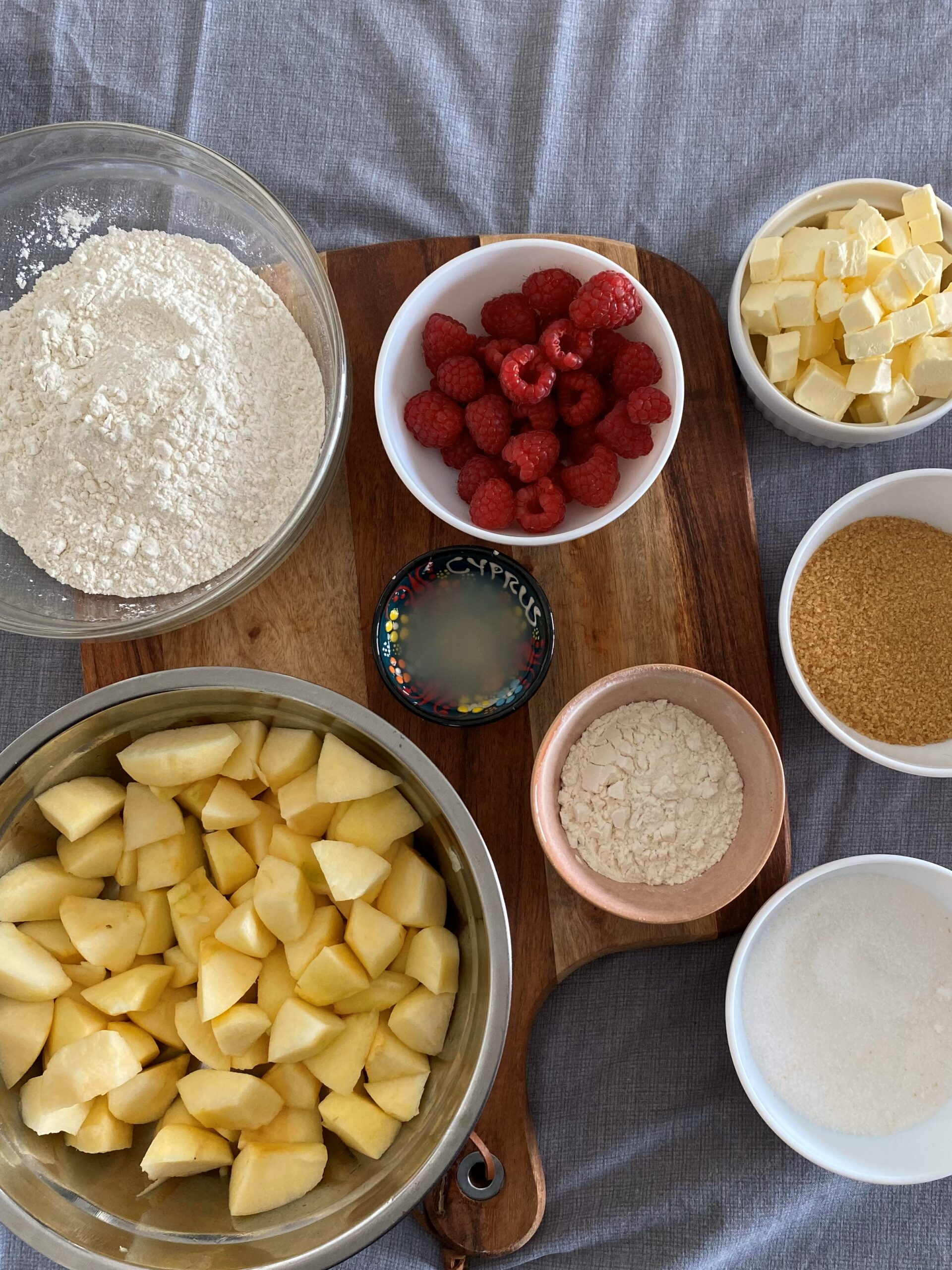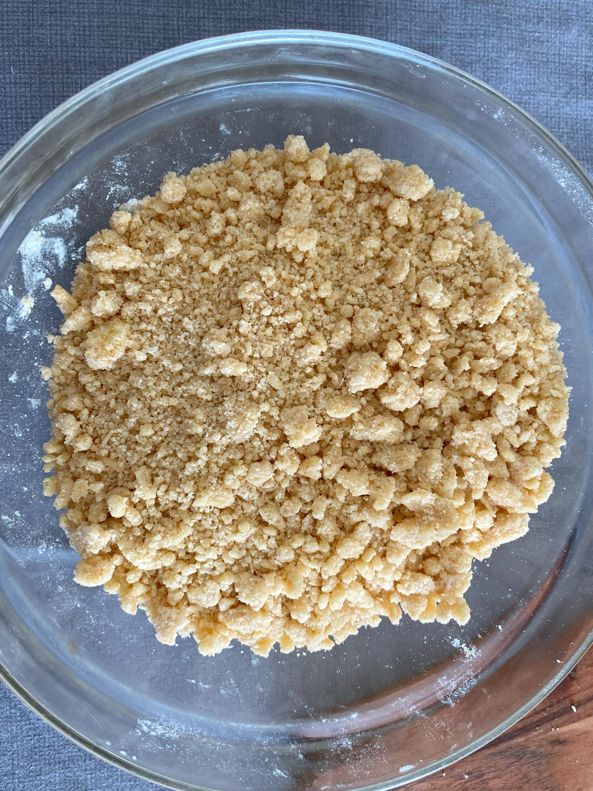 pour le crumble , mélangez du bout des doigts , la farine , le beurre , et le sucre , jusqu’à obtenir des miéttes