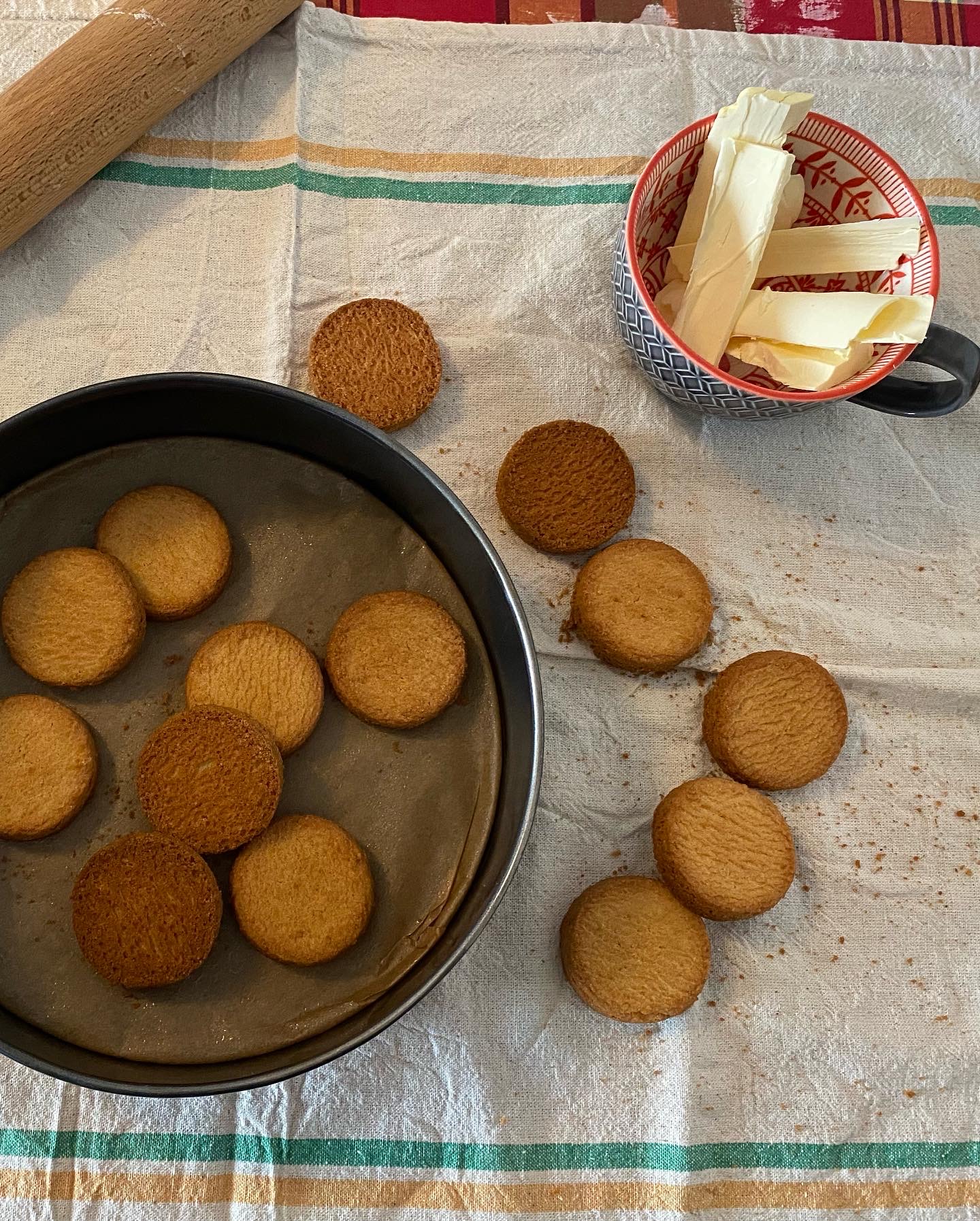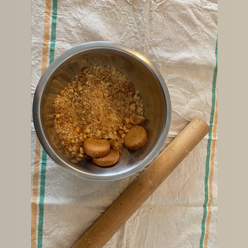 Prenez les palets bretons et les premier 50 g de beurre et faite fondre le beurre pendant se temps faite réduire en poudre les biscuits,