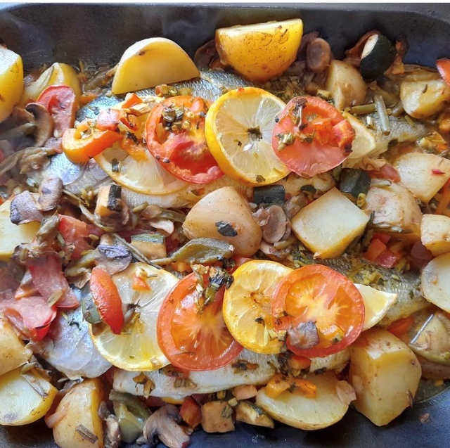 Couper les citrons et les tomates en rondelles, et diviser le tout en deux petit ta, un pour l’intérieur et l’autre pour couvrir les dorades.