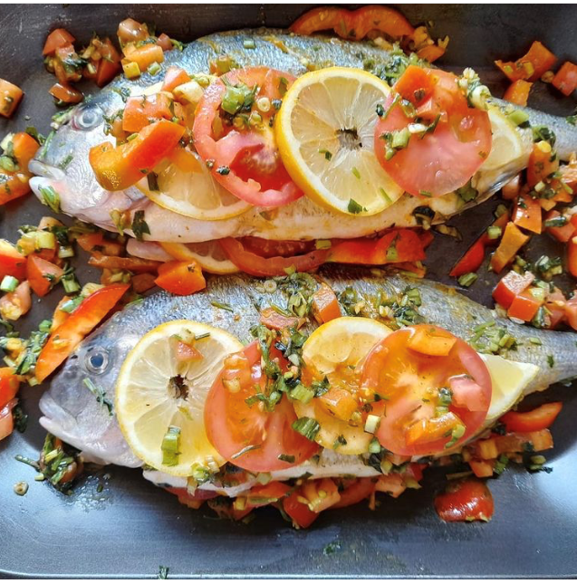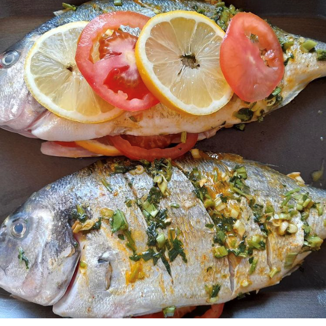 -Ciselé le persillé, émincé l’ail salée, poivrée, ajouter l’huile d’olive et mélanger et badigeonner la chaire et l’intérieur des dorades.