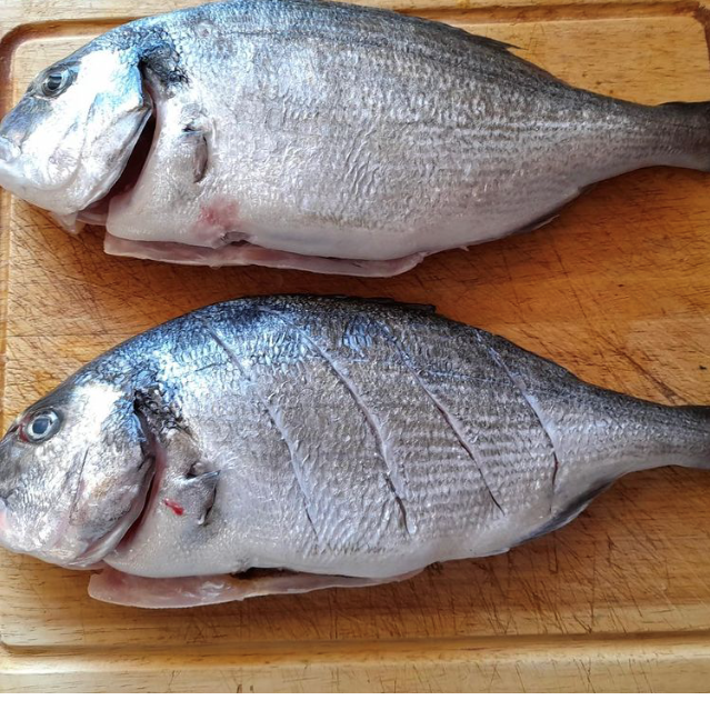 -Tout d’abord rincée d’eau clair les dorades, avec un ciseau couper les nageoires, et entailler la chaire en biais.