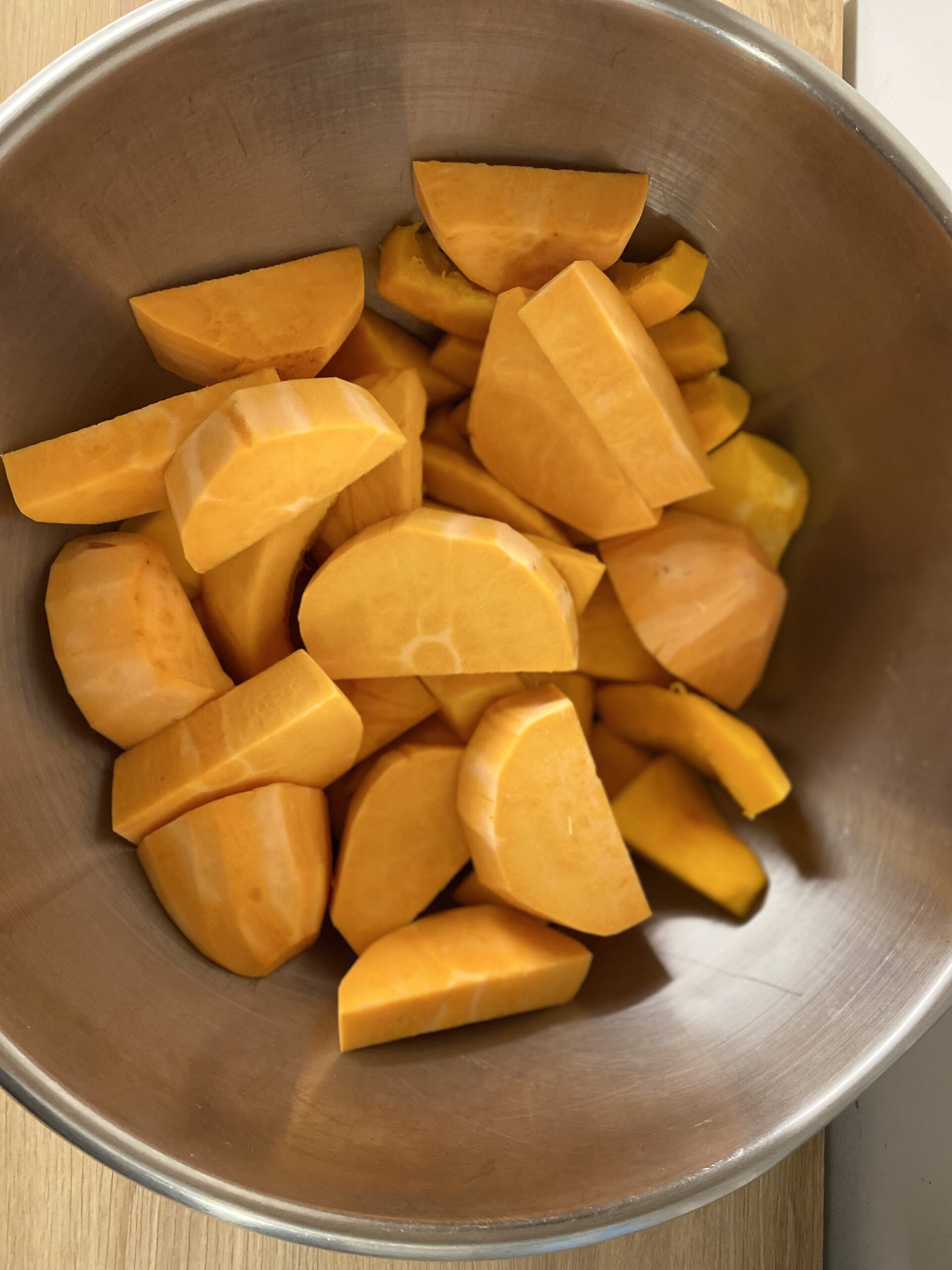 épluchez et coupez en morceaux les potimarrons et les patates douces