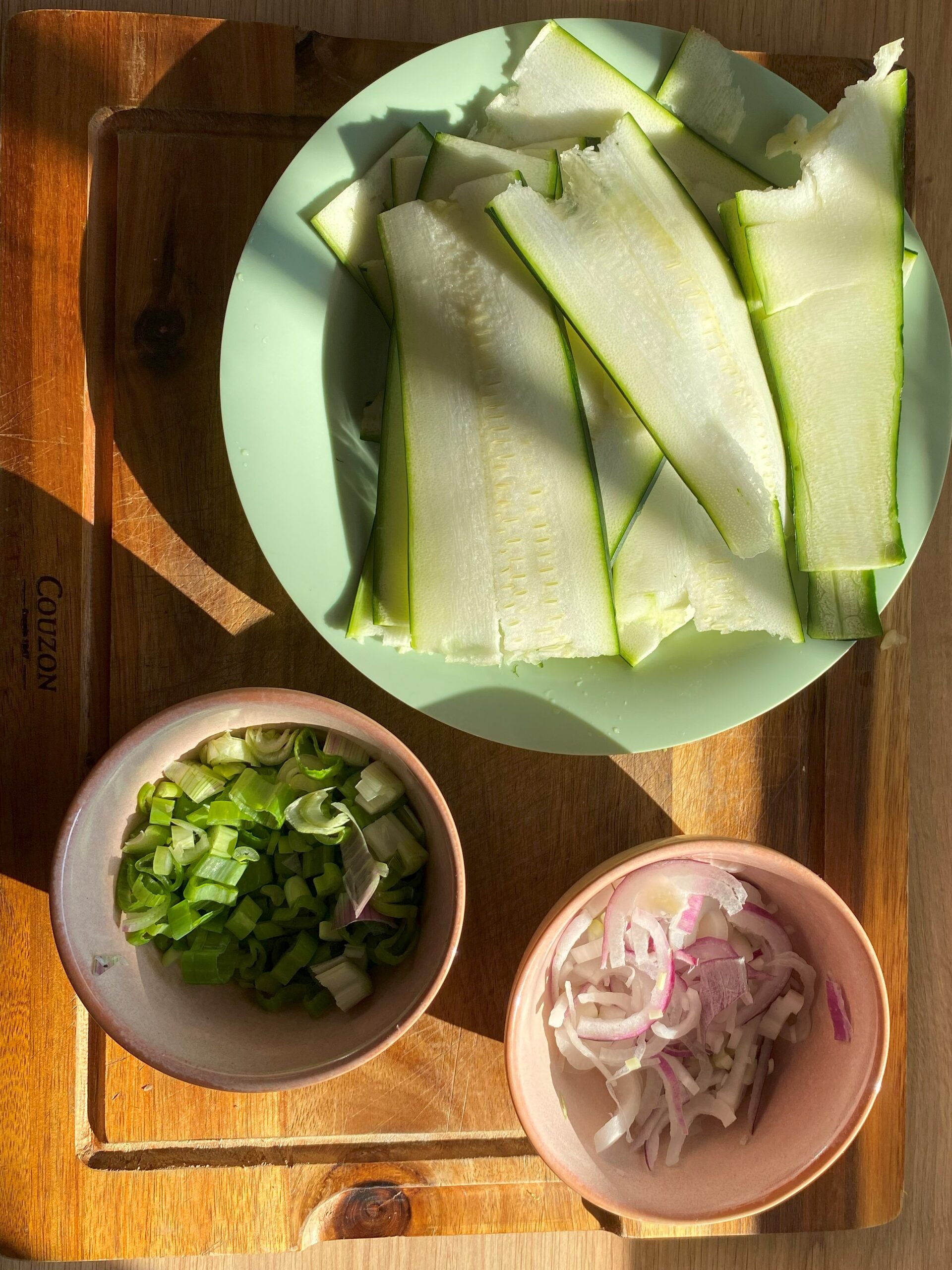 Coupez la courgette à la mandoline en lamelles en tranches de taille moyenne