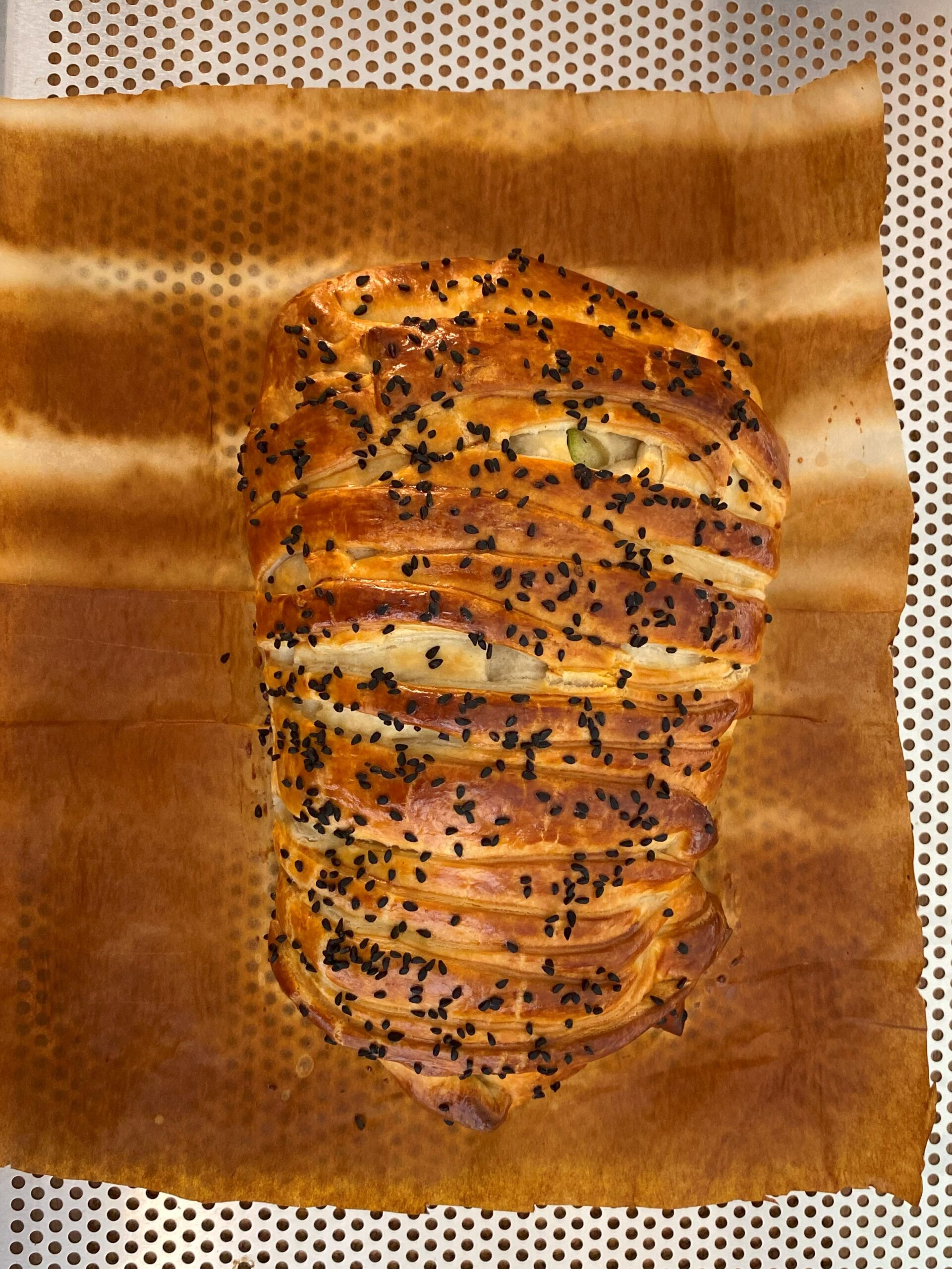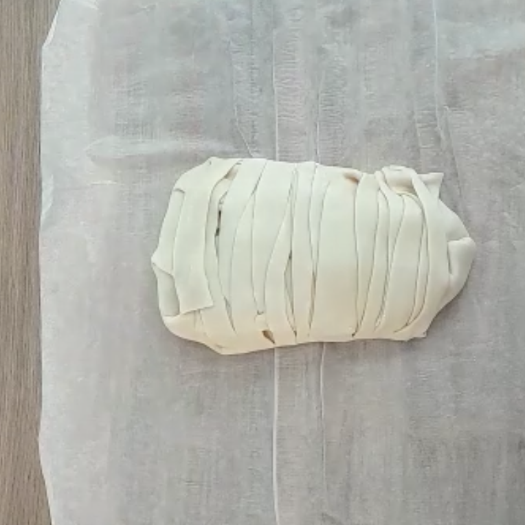 Recouvrire le tout de la pâte feuilleté sur toute la surface