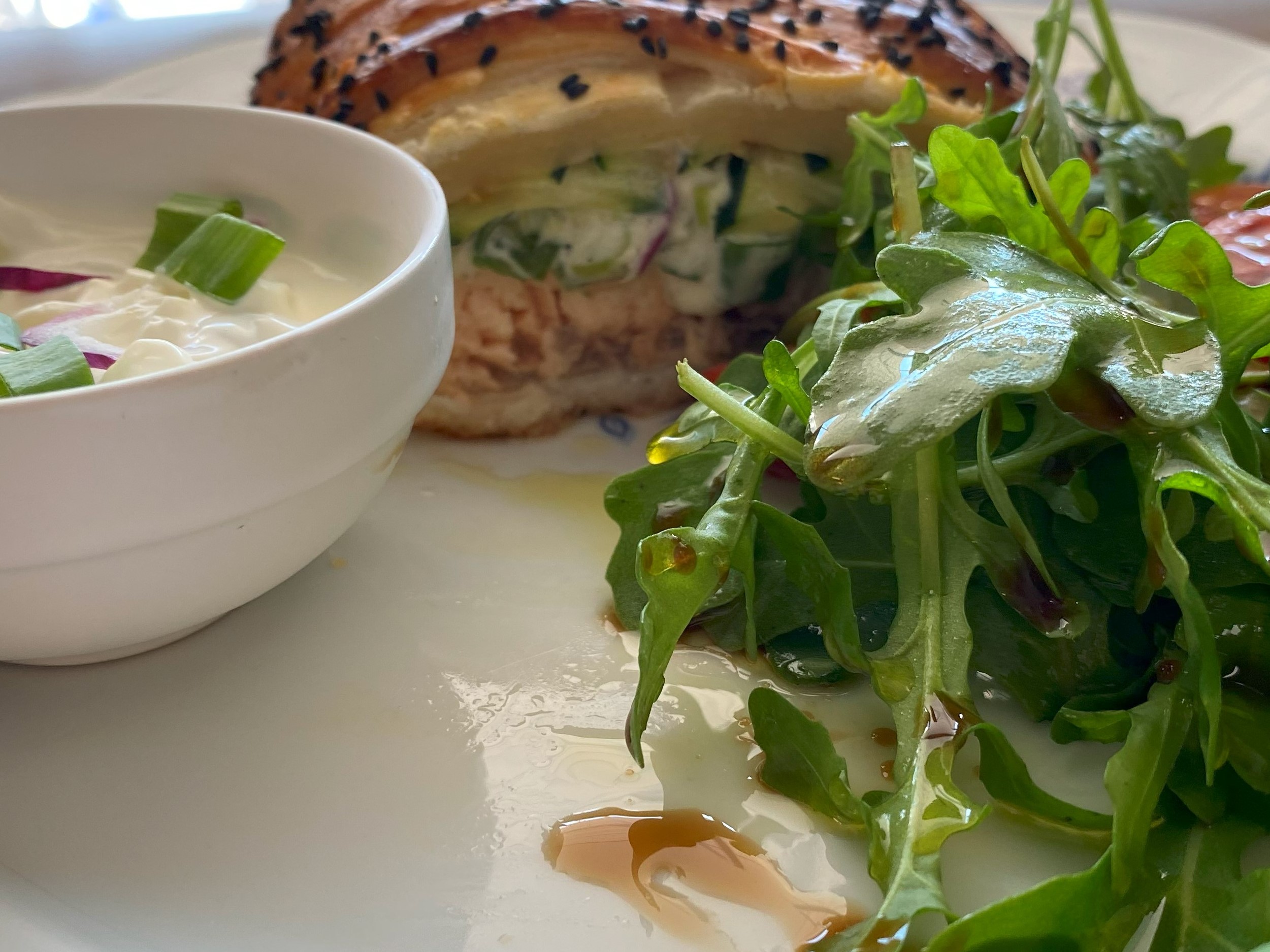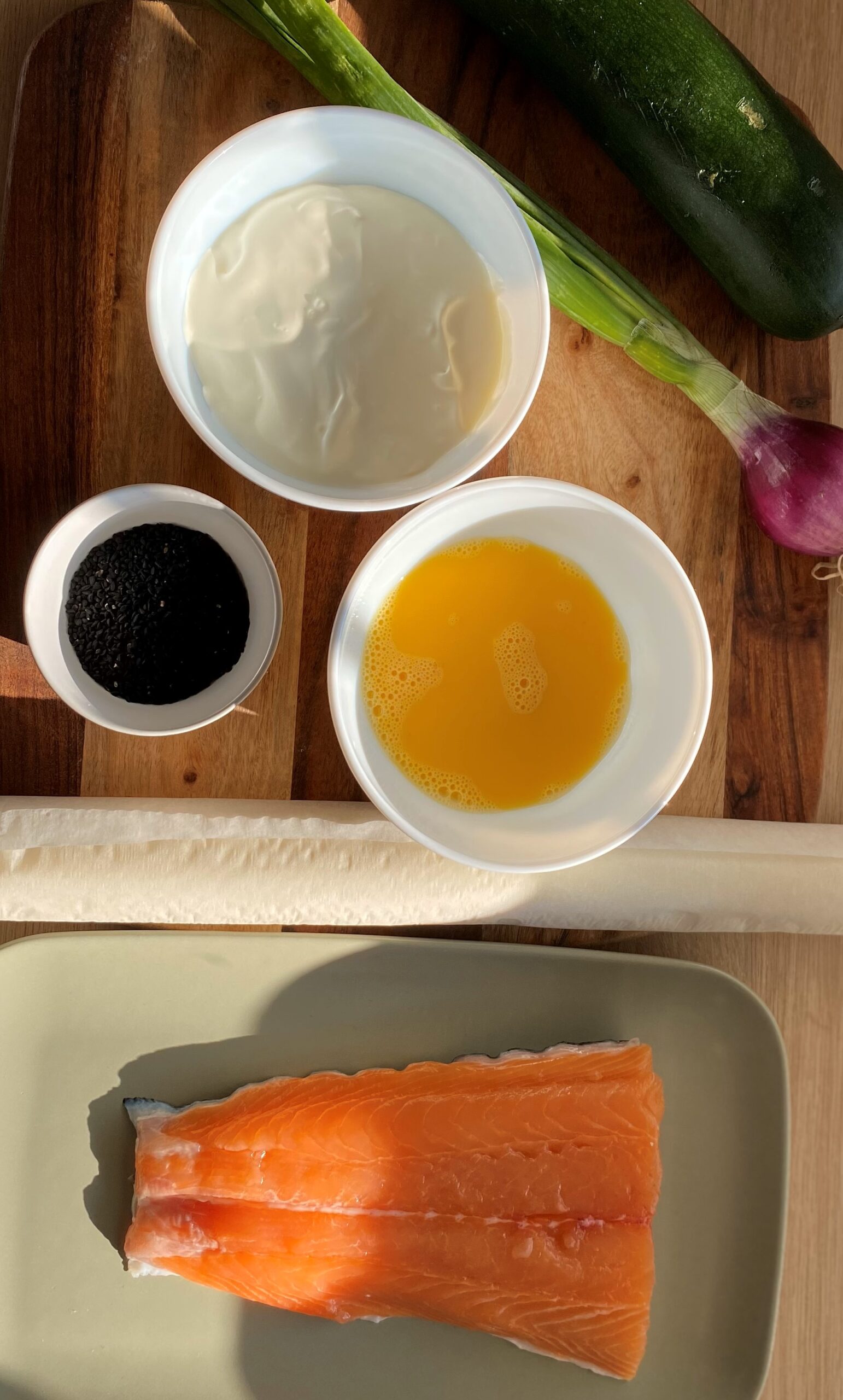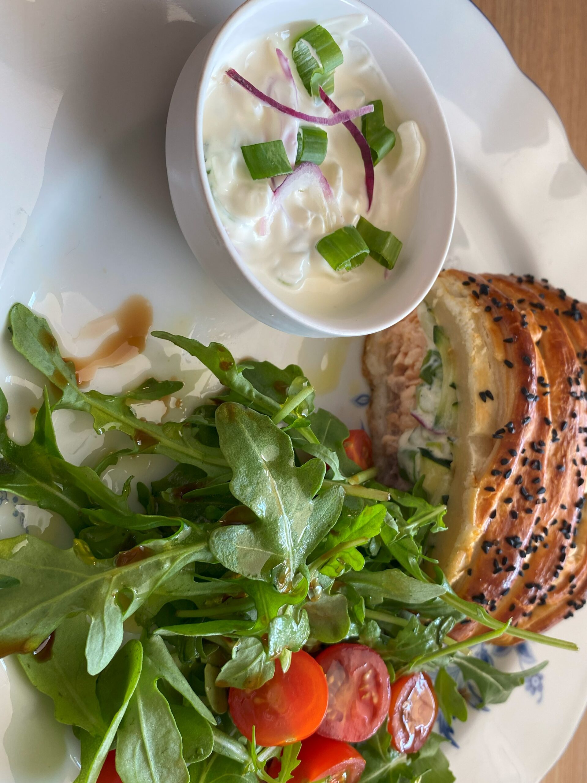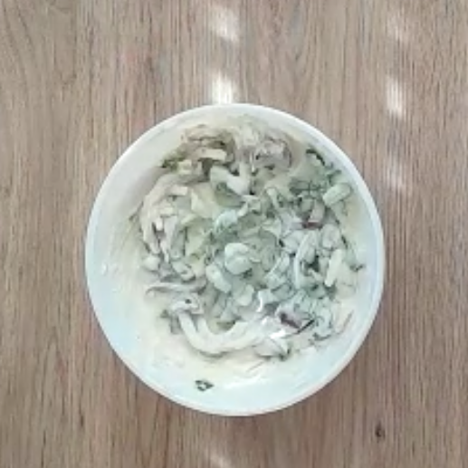 réalisez la crème , avec l’oignon ciselé , la crème épaisse , salé , poivré