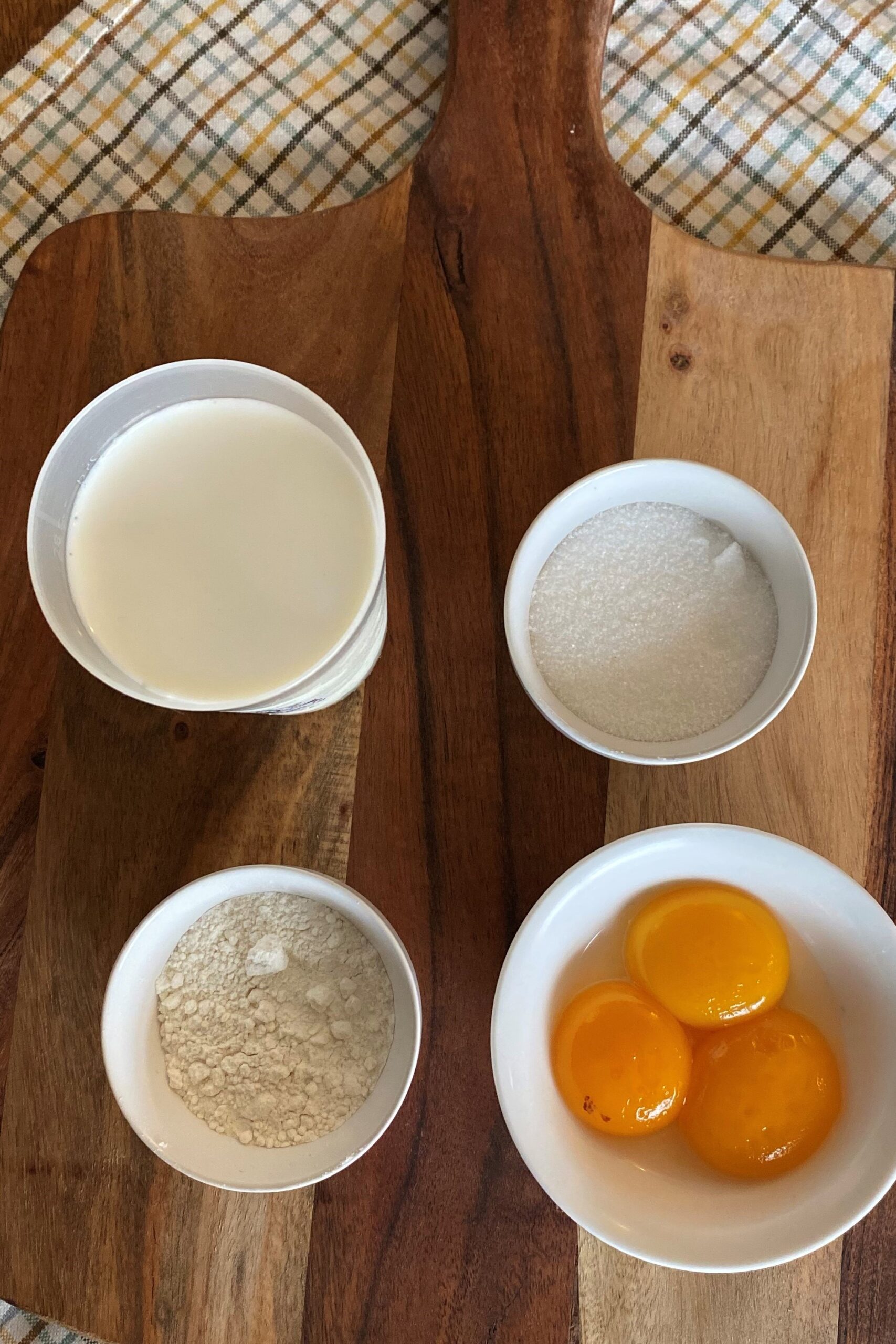 Faites chauffez le lait dans une casserole, une fois le lait porté à ébullition, incorporez-les le mélange réalisez au préalable, le sucre ; les jaunes d’œufs et la farine, mélangez le tout avec un fouet jusqu’à épaississement de la crème