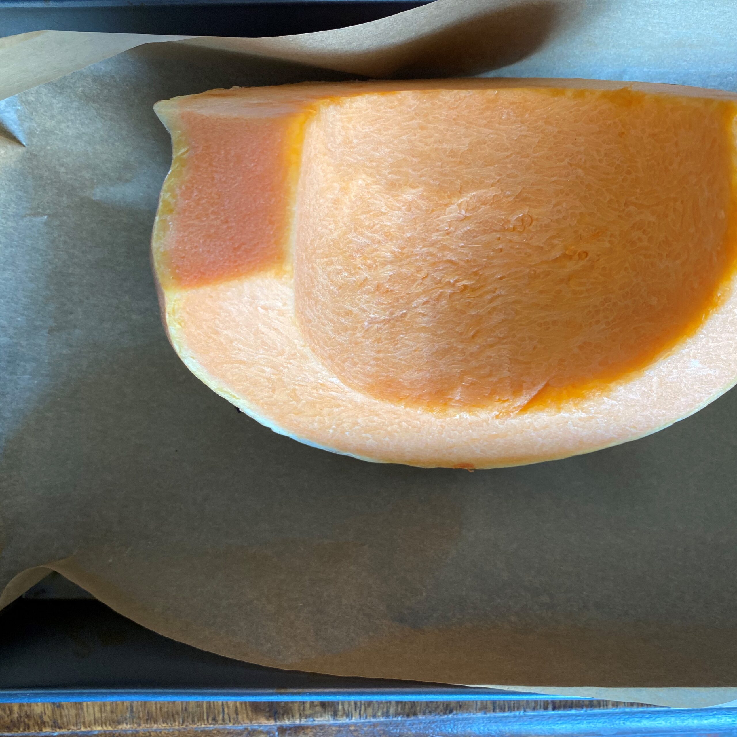 -Epluchez le potiron, retirez-en les graines et faite le cuir au four pendant 1 h tout en surveillant la cuisson.
