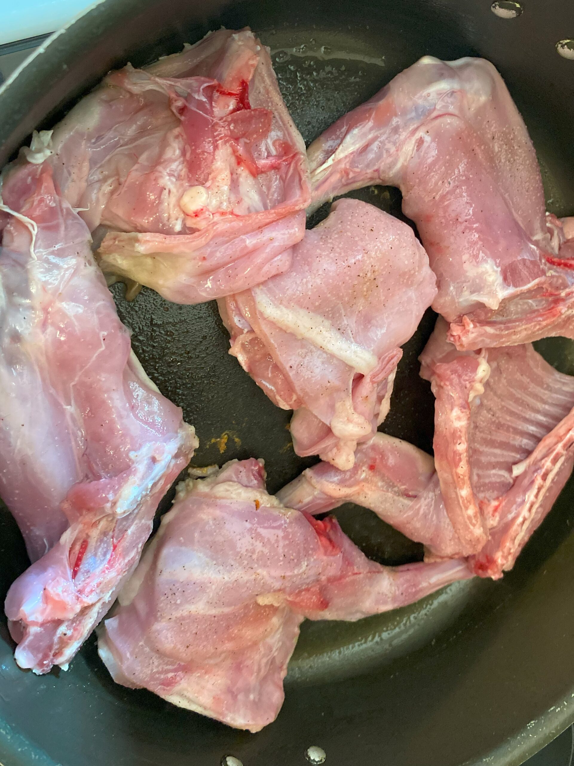 rincée à l’eau claire les morceaux du lapin