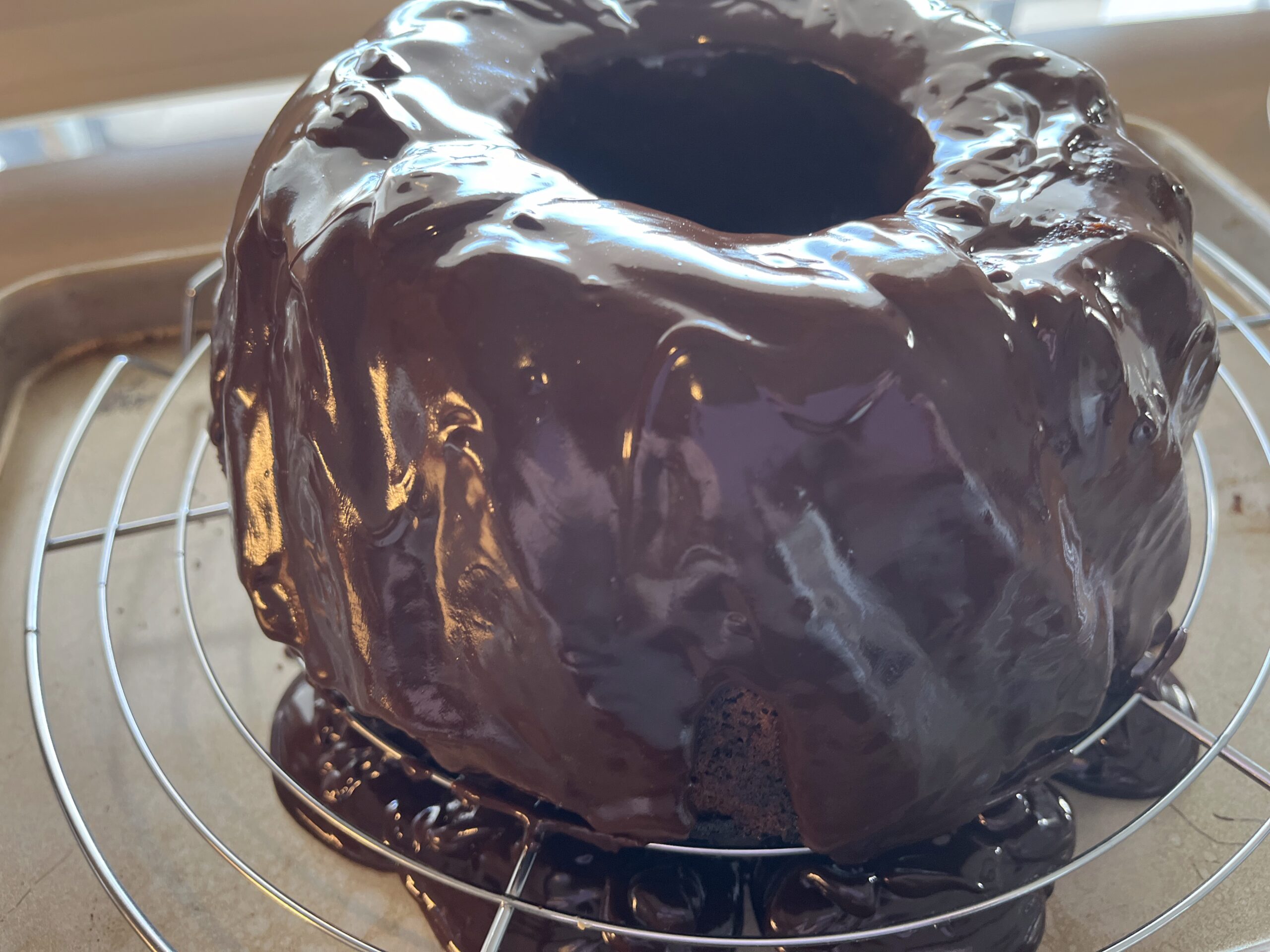faites reposer le gateau sur une grille , jusqu’à refroidissement total , puis verssez la ganache sur le gateau , laissez durcire a température ambiante .