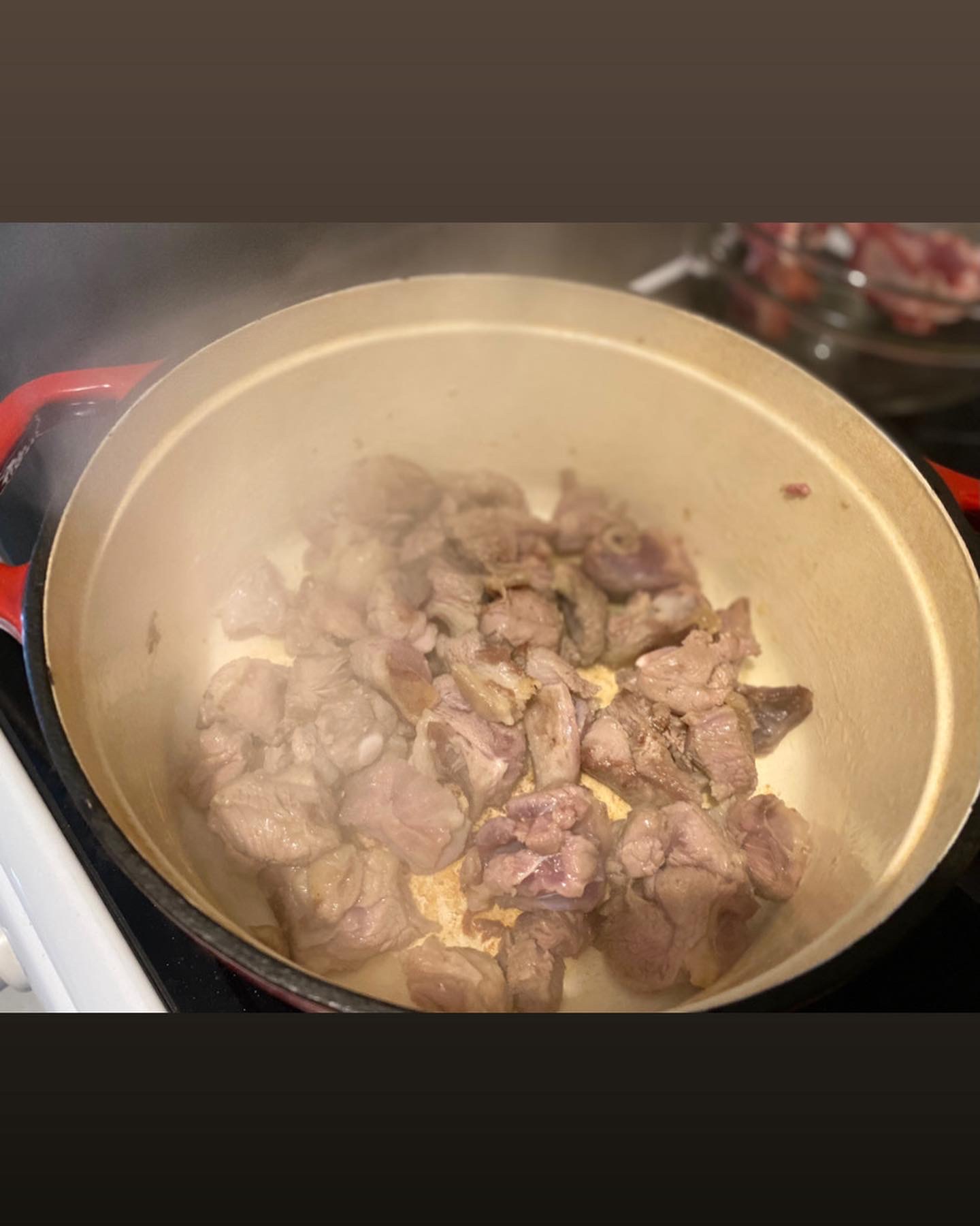 Dans une marmite, faite chauffez l’huile faites revenir les morceaux de viande de chaque côté