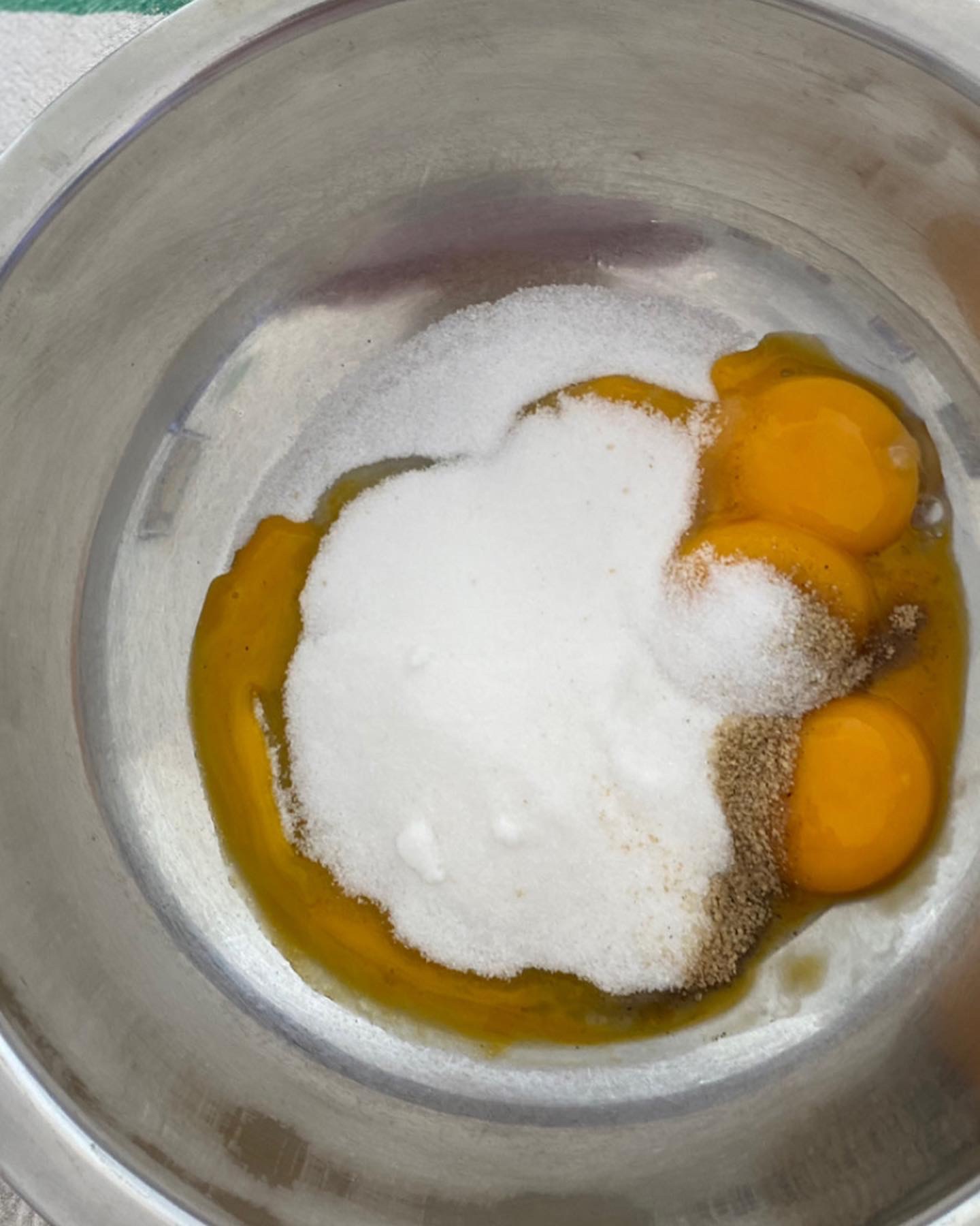 -Séparez les blancs des jaunes d’oeufs, battez les blancs en neige et résèrvez au frais battez les jaunes avec le sucre jusqu’à que le mélange blanchisse.