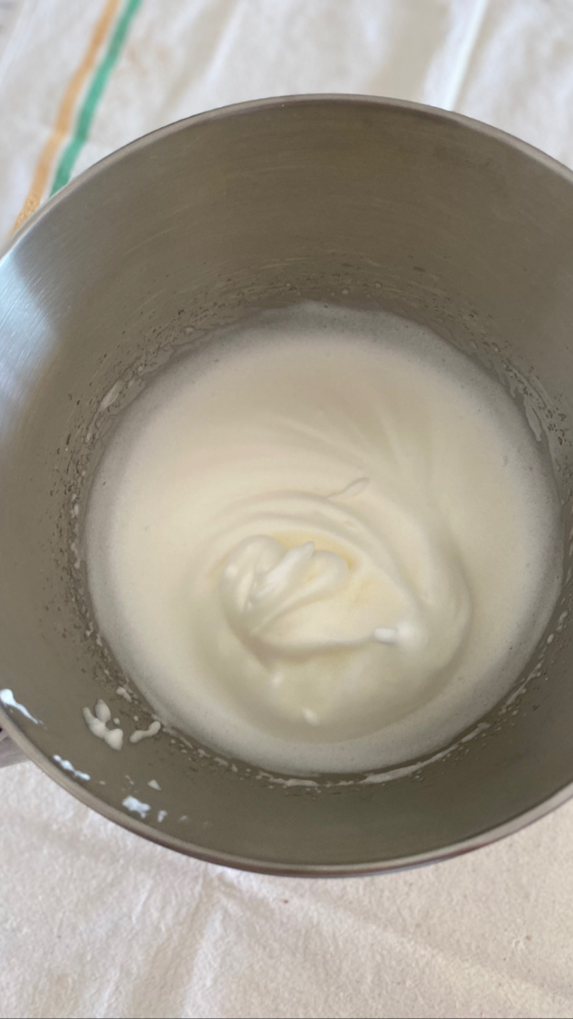 • Tout d’abord préchauffer le four à 200°, cassez les œufs et séparez les blancs des jaunes, montez les blancs avec les 10 g de sucre, une fois les blancs mousseux incorporez le sucre en deux fois tout en continuant à battre les blancs, une fois qu’ils ont bien serrer réservez- les au frais.