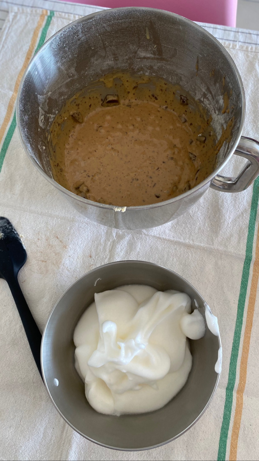 • Une fois le mélange bien homogène, incorporez les blancs en deux temps et mélangez délicatement.