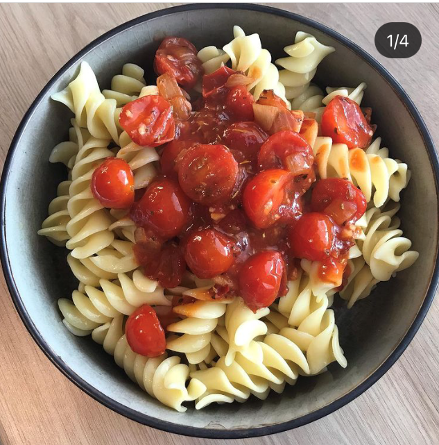 -Une fois l’oignon fondu ajoutez-s’y les tomates cerises, salé et poivré et laissez les fondre durant 5 minutes