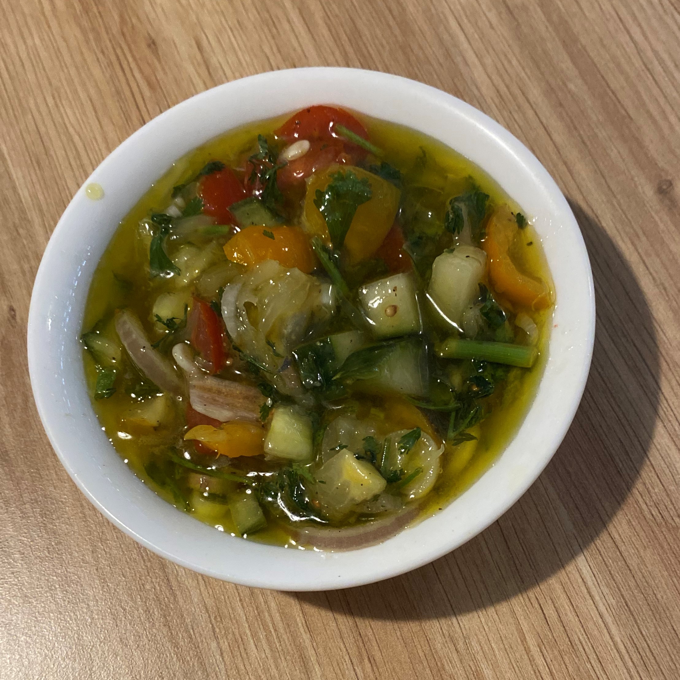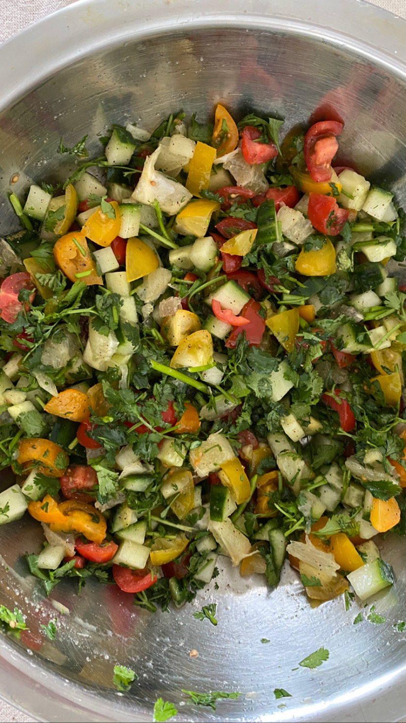 – versez le jus de citron puis l’huile d’olive mélanger le tout délicatement,