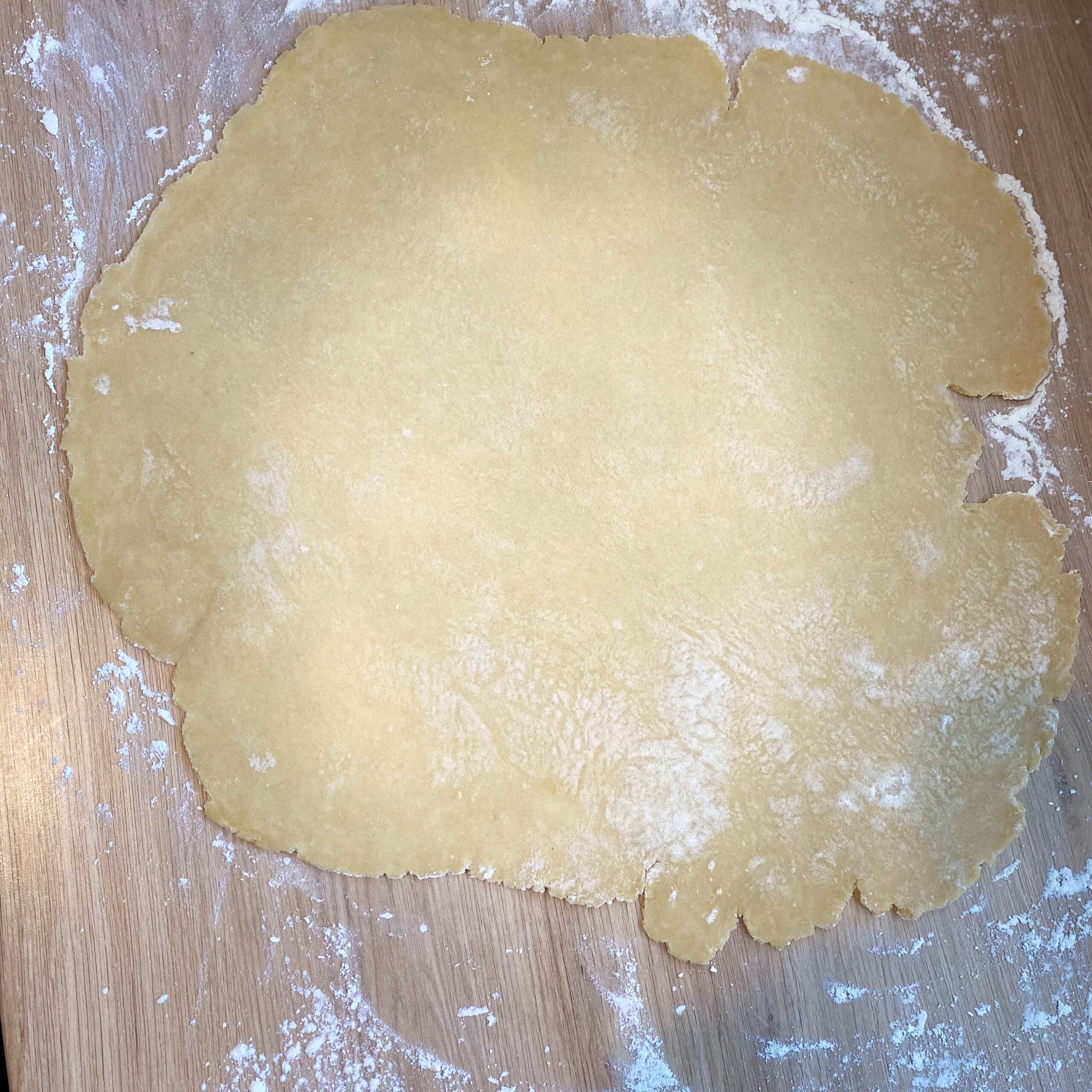 -abaissez la pâte au rouleau, sur un plan de travail fariné, puis la moulez dans un moule à manquer de 22 cm