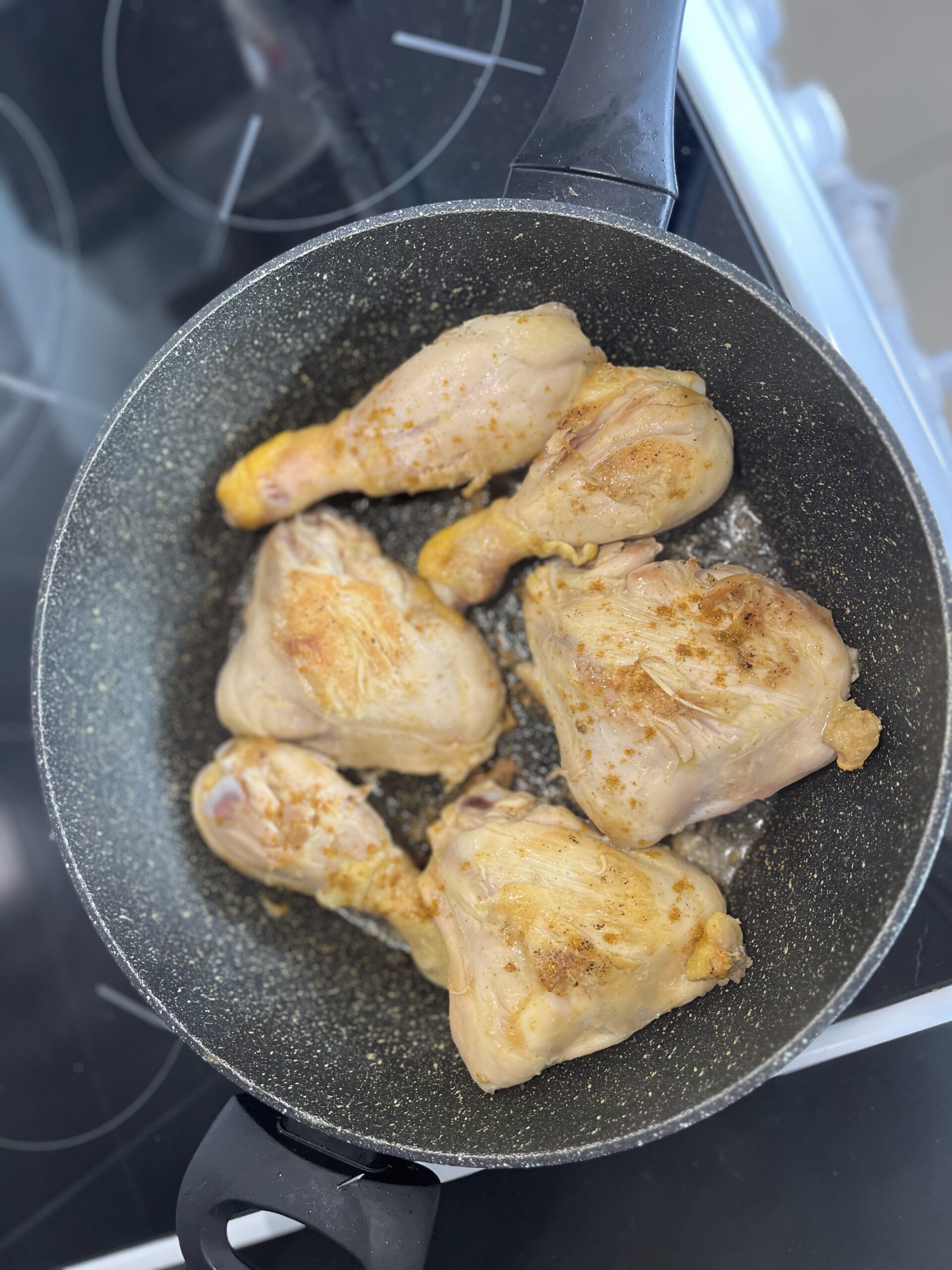 - marquez les morceaux de poulez à la poèle des deux cotés , jusqu’à qu’il soit bien marquez , salée ,poivrée