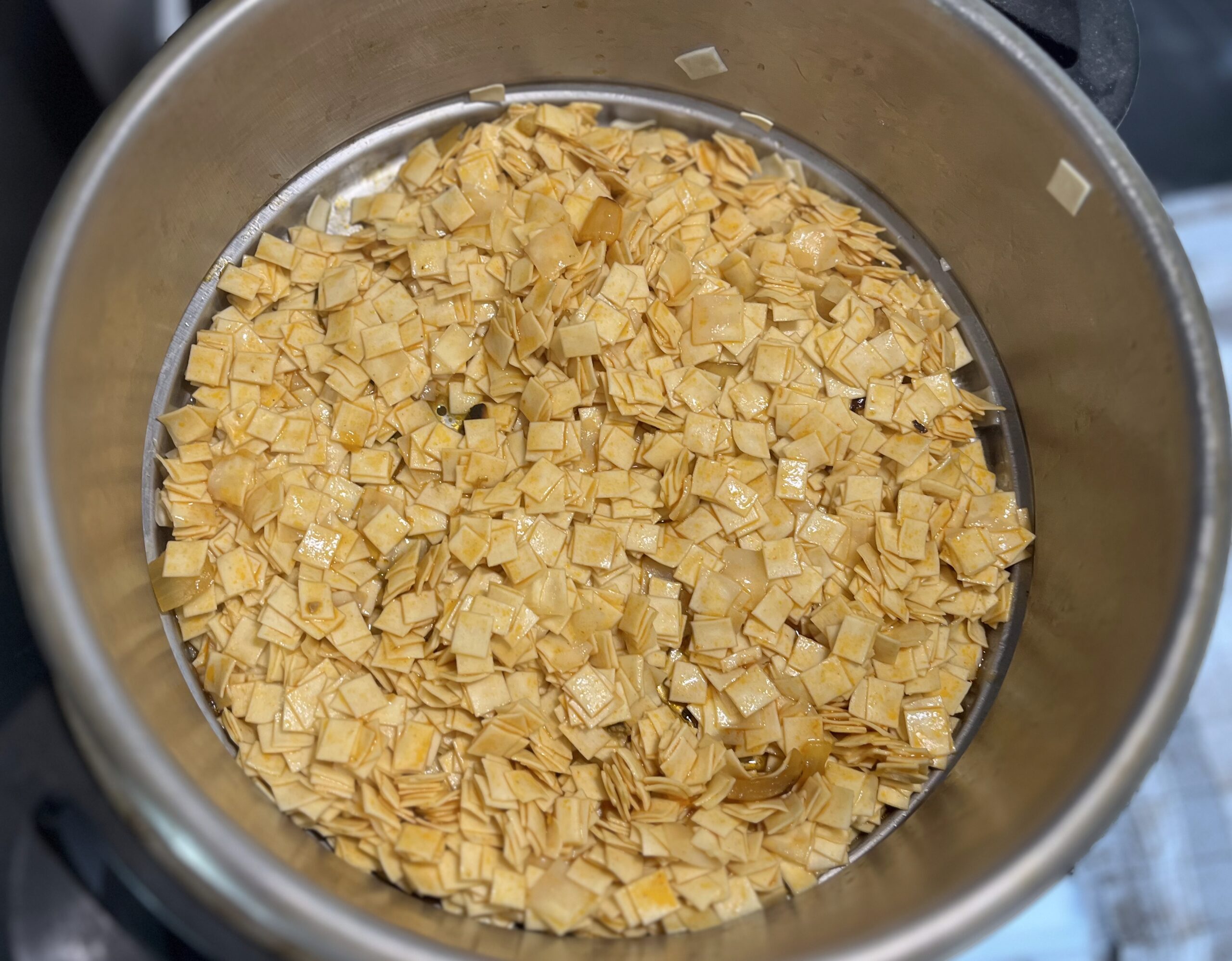 - disposez les pâtes dans le bac de la marmites et couvrir pour une cuisson a l’étouffée